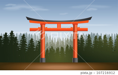 Torii gates, beautiful scene with Morning in japan, vector illustration