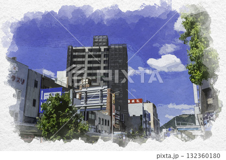 水彩画風 鳥取駅前 駅前通り 本通り 鳥取県鳥取市