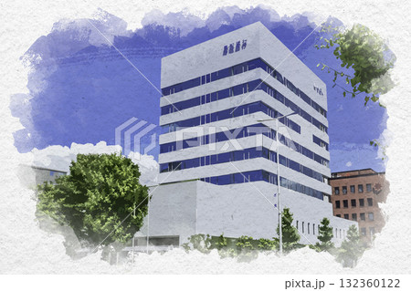 水彩画風 とりぎん文化会館 鳥取県立県民文化会館 鳥取県鳥取市