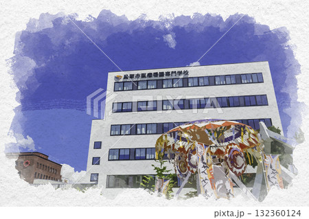 水彩画風 鳥取駅前 鳥取市医療看護専門学校 鳥取県鳥取市