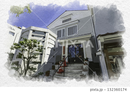 水彩画風 鳥取駅前 鳥取民藝美術館 鳥取県鳥取市