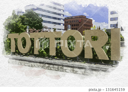 水彩画風 JR鳥取駅 砂文字モニュメント 鳥取県鳥取市