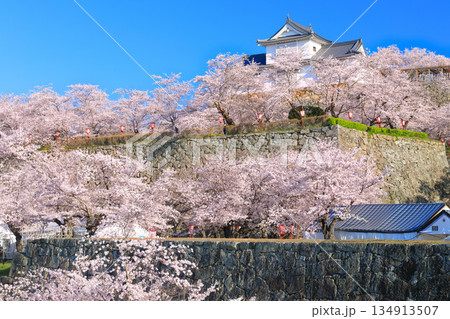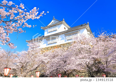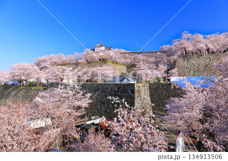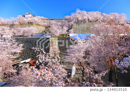 【岡山県】快晴の津山城の備中櫓と満開の桜(鶴山公園)