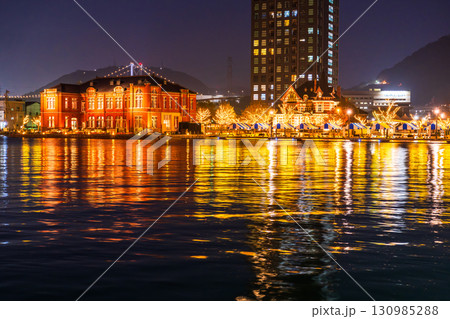《山口県》下関市中心街・関門海峡の夕暮れ