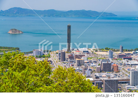 《香川県》瀬戸大橋をのぞむ街並み・青ノ山の眺望