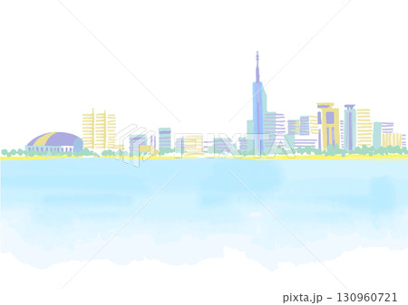 福岡市百道 海辺の風景 一筆書きと水彩