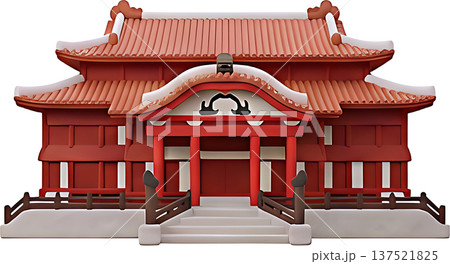 首里城正殿の3Dイラスト、クレイ風の沖縄観光アイコン素材
