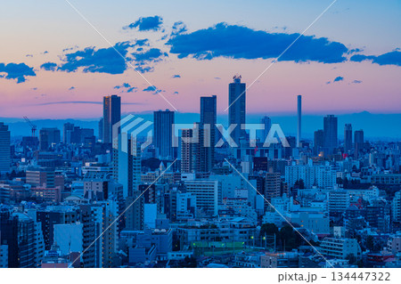 「東京都」東京ビル群と富士山の風景 都市風景