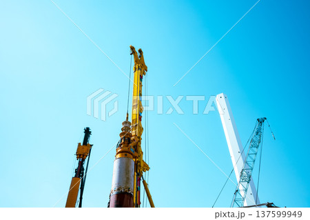 再開発中の池袋 重機と煙突 2026.02 b-5 クールカラー