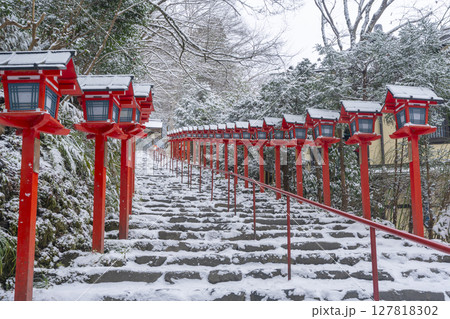 冬の京都 貴船神社 春日灯籠が並ぶ美しい参道