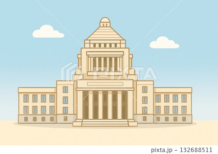 国会議事堂のフラットイラスト(白背景)|ニュース・政治・行政・教育素材に使えるベクターイメージ