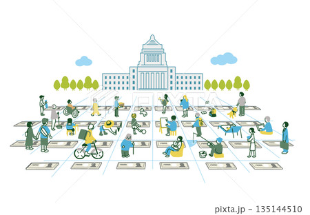 シンプルな国会議事堂と議員