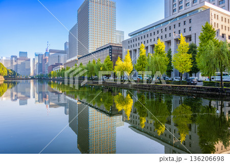 皇居のお堀と水面に映る丸の内・大手町の高層ビル群