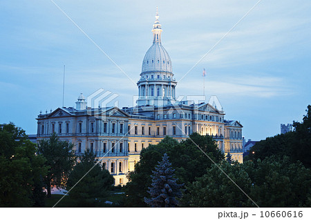 USA, Illinois, Springfield, State Capitol Building illuminated at sunset