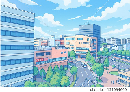 東戸塚の街並みと青空 Cityscape of Higashi-Totsuka in Blue Sk