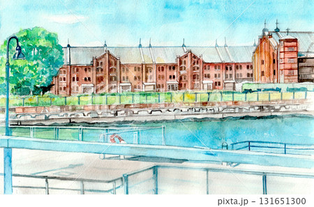 水彩画風 横浜みなとみらい 万国橋周辺 神奈川県横浜市