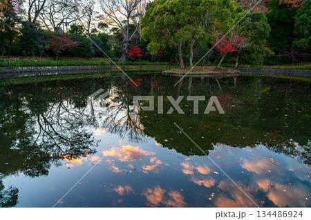 【神奈川県】鶴岡八幡宮の平家池に映り込む美しい夕暮れの空