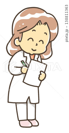 白衣を着たくまの指差しイラスト(ベクター素材)