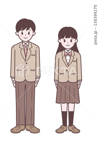 茶色の制服ブレザー・背中合わせの男女の学生のイラスト【背景なし】