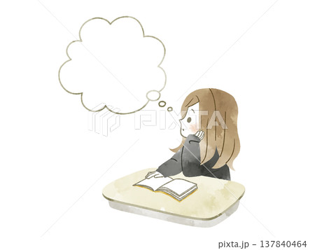 横顔の女学生カラーイラスト(頭頂部まであり)、背景なし