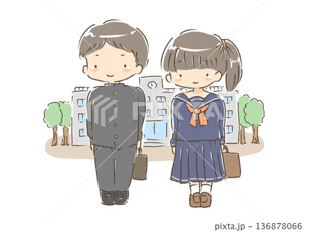 学ランを着た男子中学生とセーラー服を着た女子中学生