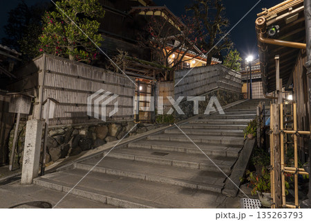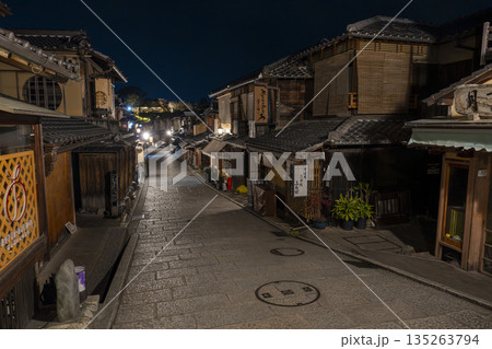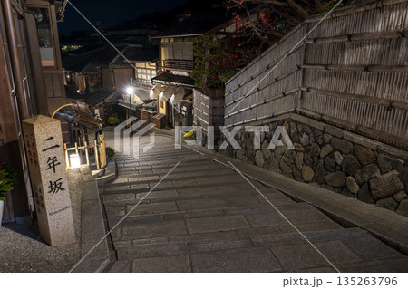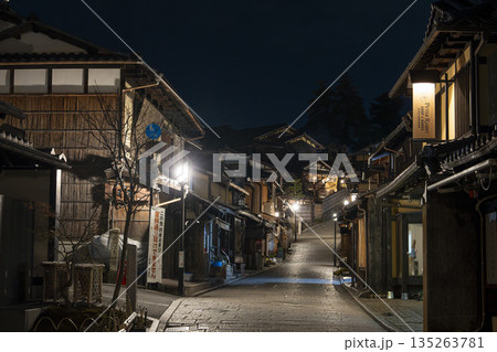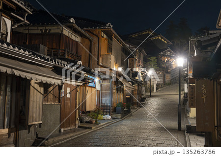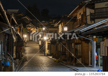 冬の二寧坂(二年坂) 夜明け前の町並み 京都市東山区
