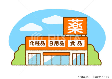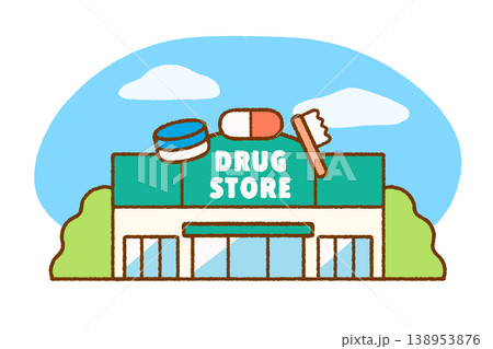 ドラッグストアの外観イラスト|店舗・買い物・商業施設