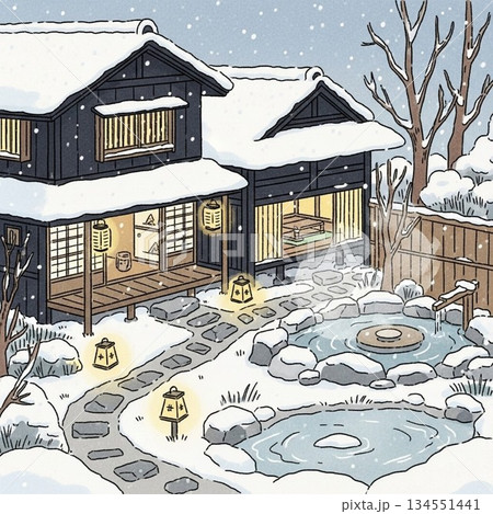 雪降る温泉