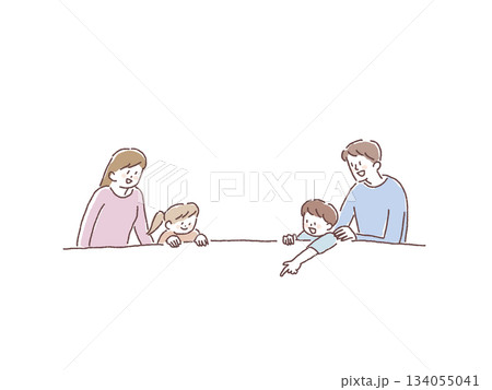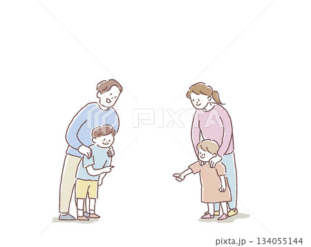 笑顔の家族(指をさす男の子と女の子)
