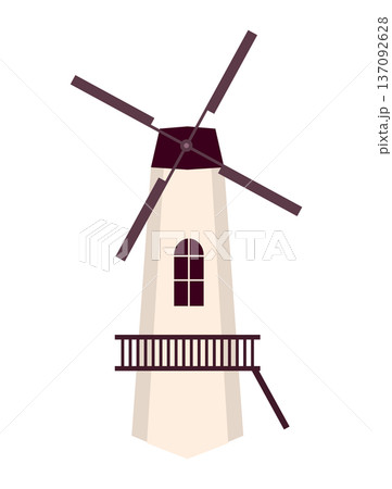牧場に立つおしゃれな赤い風車のカントリー風イラスト素材