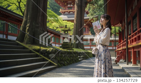パワースポット 神社巡りをする女性