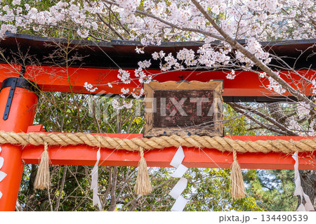 【世界遺産 古都京都の文化財】宇治上神社のソメイヨシノの花と鳥居2 京都府宇治市