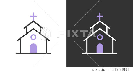 教会の白黒で使いやすい線画アイコンのアイソメトリックイラスト
