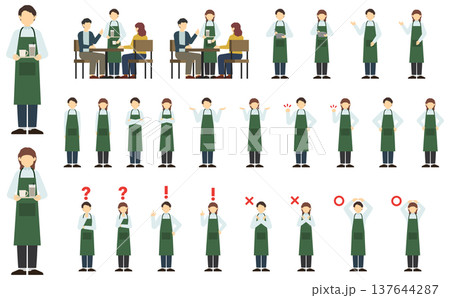 カフェ店員とバリスタのデフォルメ人物セット 接客スタッフ素材