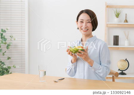 サラダを食べる女性