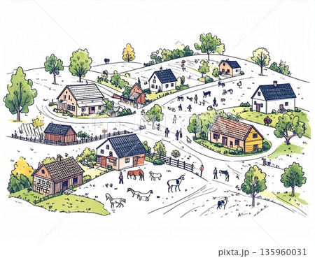 絵本風でラフな水彩タッチのいろんなかわいいお家のイラスト素材セット