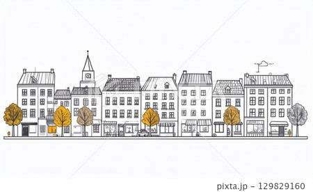 《AI画像》シンプルな街並み線画イラスト