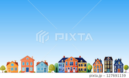 カラフルな住宅街のイラスト