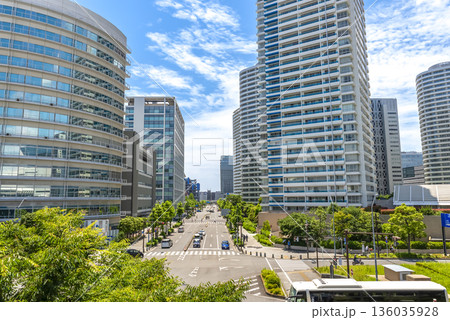 横浜みなとみらいの都市風景 高層ビルと青空