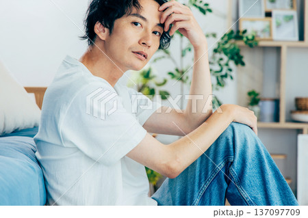 リビングでくつろぐミドルの男性