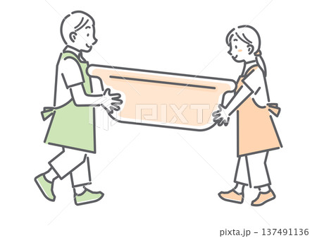浴槽を運ぶ訪問入浴介護のスタッフ シンプルでお洒落な線画イラスト