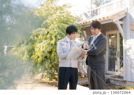 リフォームの打ち合わせをする男性