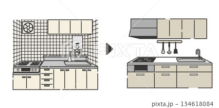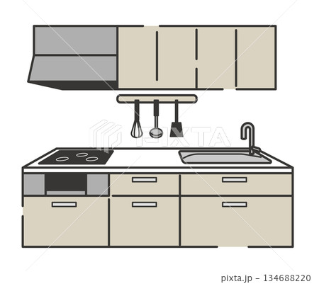 手描きのシステムキッチンのイラスト(カラー/主線なし)