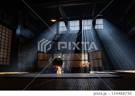 【光芒素材】冬の風物詩・妻籠宿脇本陣奥谷の光芒【長野県】