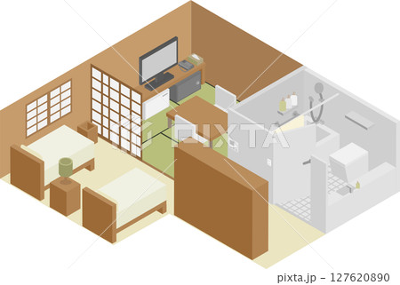 アイソメトリックなホテルの和洋室の客室のイメージ素材