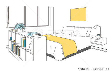 朝日が差し込む植物のある寝室 ナチュラルインテリアイラスト
