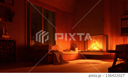 温かい暖炉のある部屋