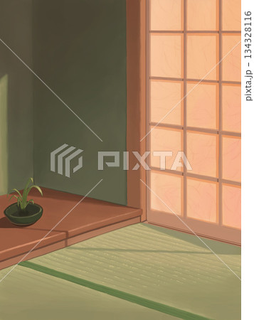 夕暮れの光が差し込む和室の背景イラスト