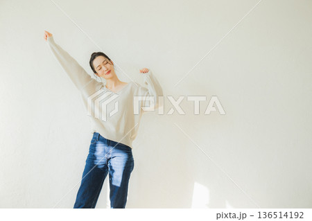 伸びをする女性