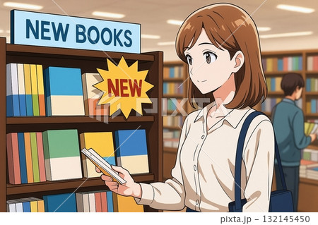 【学園イラスト素材】図書室で本を読む女子生徒・爽やかな青春と学びの風景